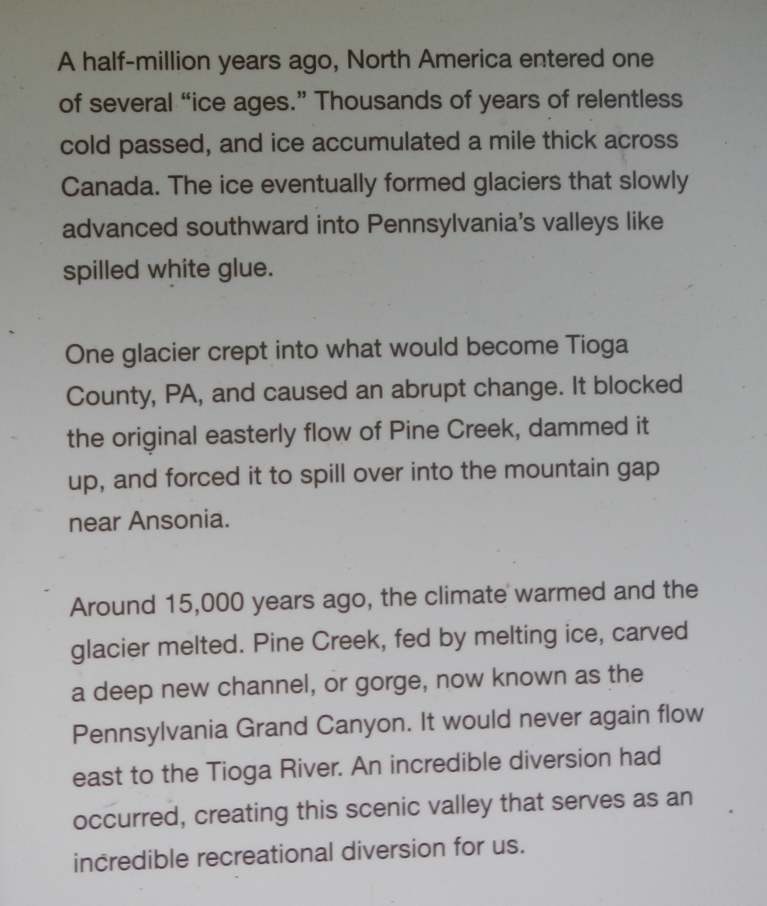 There was no way to fit the entire view of the “Grand Canyon” in one photo frame, but hopefully, this short video panorama I took will give you an idea of the scale of this feature – not just a state park, but also a National Natural Landmark (see also the PA listing).