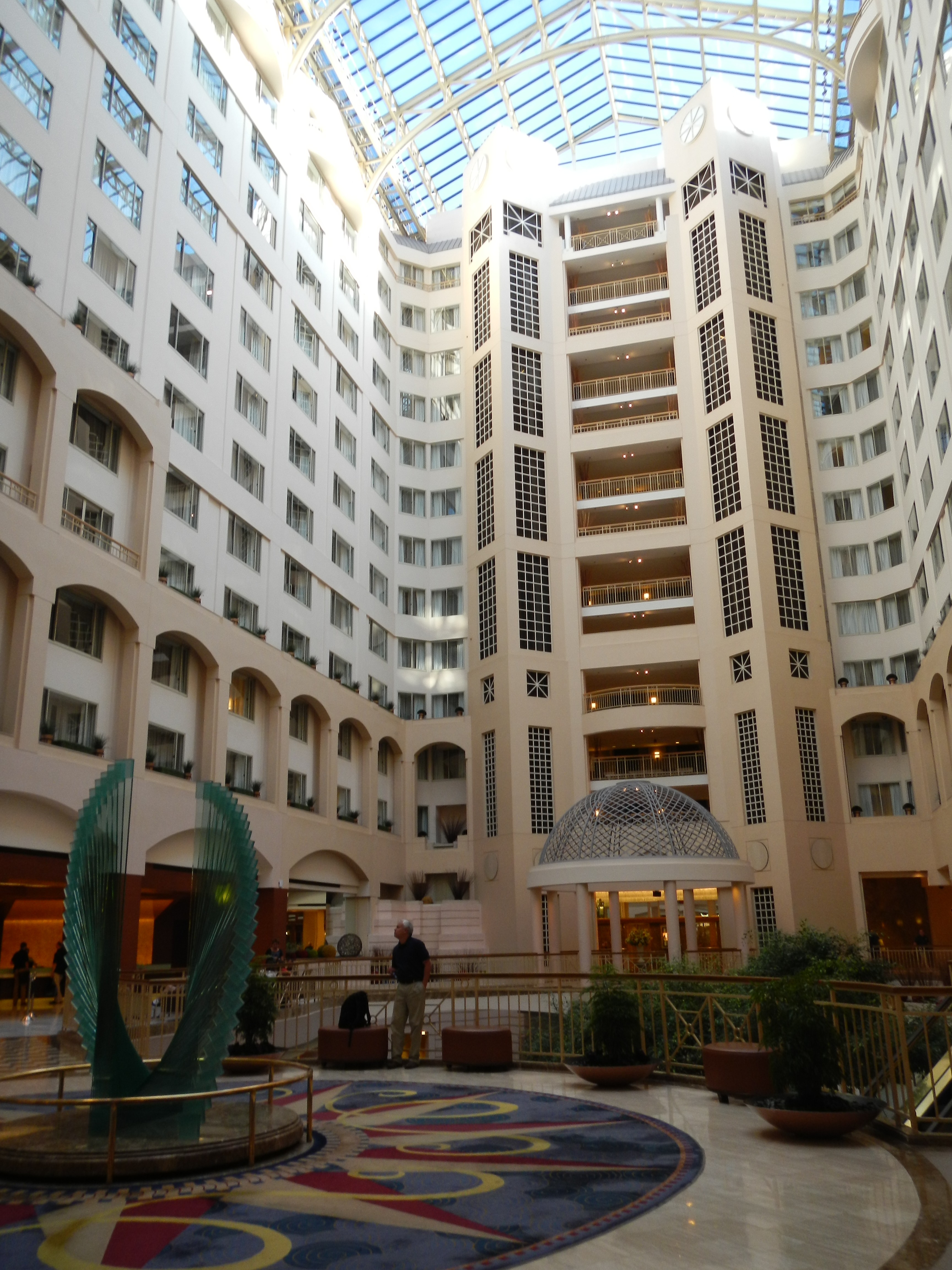 I stayed at the Grand Hyatt Washington DC hotel, only a block away from the meeting site, the American Association for the Advancement of Science (AAAS) headquarters (the AAAS building is the first building in Washington DC to earn LEED-EB Gold Certification). The hotel is in a great location, and I’ve stayed here before for conferences (thank goodness for a summer hotel package deal to save me some of the cost of the trip!). This hotel is beautiful inside. My room had a television bigger than mine at home, a bed bigger than mine at home, and a bathroom bigger than mine at home (that’s OK, that means I’m having a smaller footprint on the planet!). The hotel is located right at an exit to the Metro Center Station of the Metro (DC’s subway system), which makes travel really convenient when heading to DC by Amtrak. The hotel had a Starbucks and three other restaurants – certainly no shortage of food! And the vending machines had Pepsi products, just like our campus.