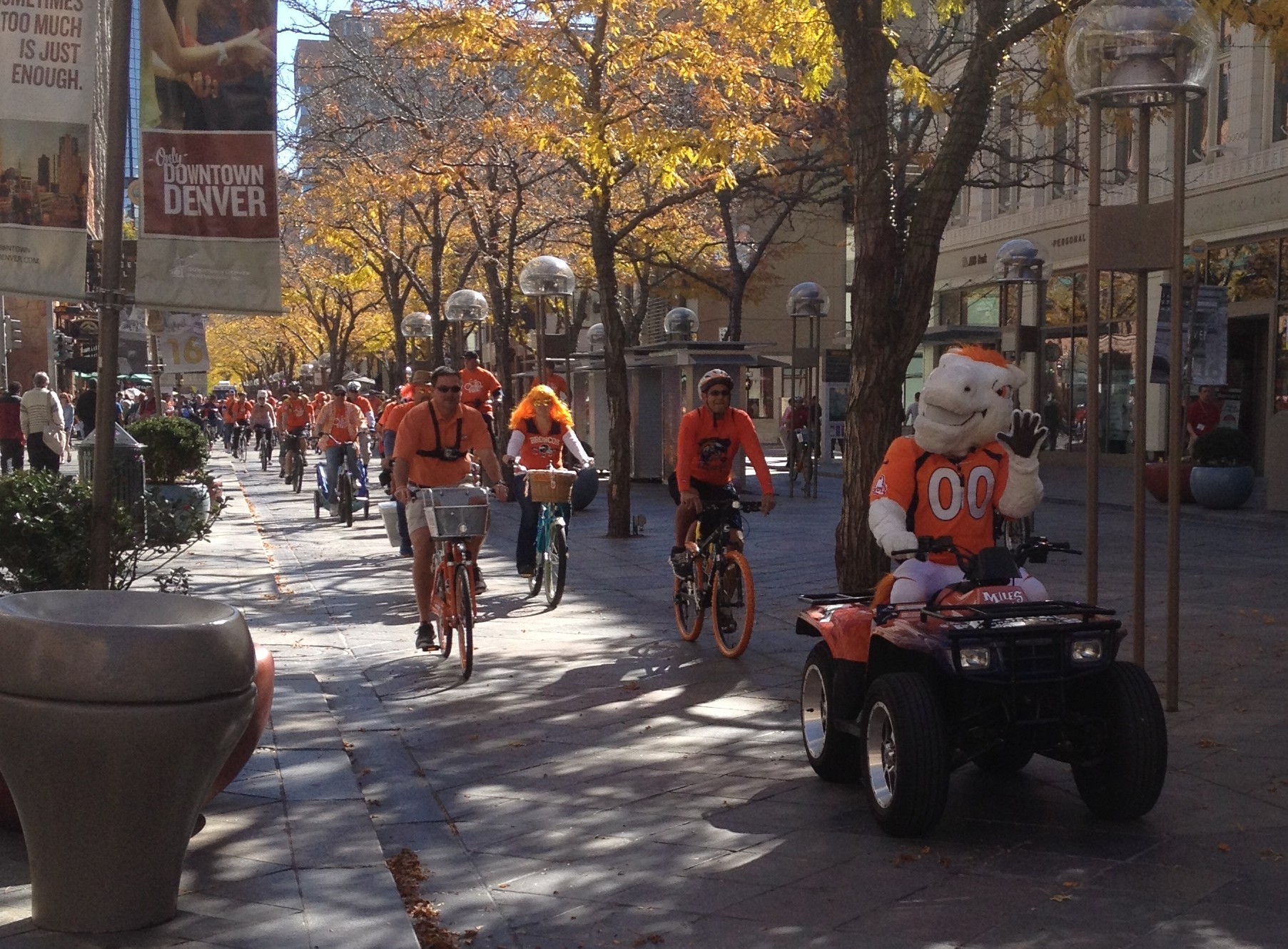I left the Colorado Convention Center at the end of the morning to grab some lunch. I walked down to 16th Street, a pedestrian mall in downtown Denver, and saw a long stream of people riding bicycles down the street. The bicyclists were led by none other than Miles, the mascot of the Denver Broncos (my students know what a big fan I am of mascots!). That is something I sure don’t get to see every day! Then, I was finally able to get back across the street and back to the Convention Center to see the first half of a session on Developing and Sustaining Thriving Geoscience Programs and Departments: Strategies and Examples from Two-Year and Four-Year Colleges and Universities II. I was excited to hear about the various models that two-year colleges are using for field camp experiences, and one of the talks focused on the flipped classroom. I was co-author on one of the session talks, presented by my colleague Dr. Patricia Manley from Middlebury College in Vermont, titled Undergraduate Research as a Teaching Practice: Geosciences Division of the Council on Undergraduate Research. I had to leave the session early, ironically, to attend the business meeting of GeoCUR. I’m an elected councilor with the group, and approximately 20 of my fellow councilors met to work on programming and mentoring issues relating to undergraduate research. It is always great to connect with this group, and I appreciate all of their enthusiasm and energy that each one of them has for working with undergraduate students on research projects.