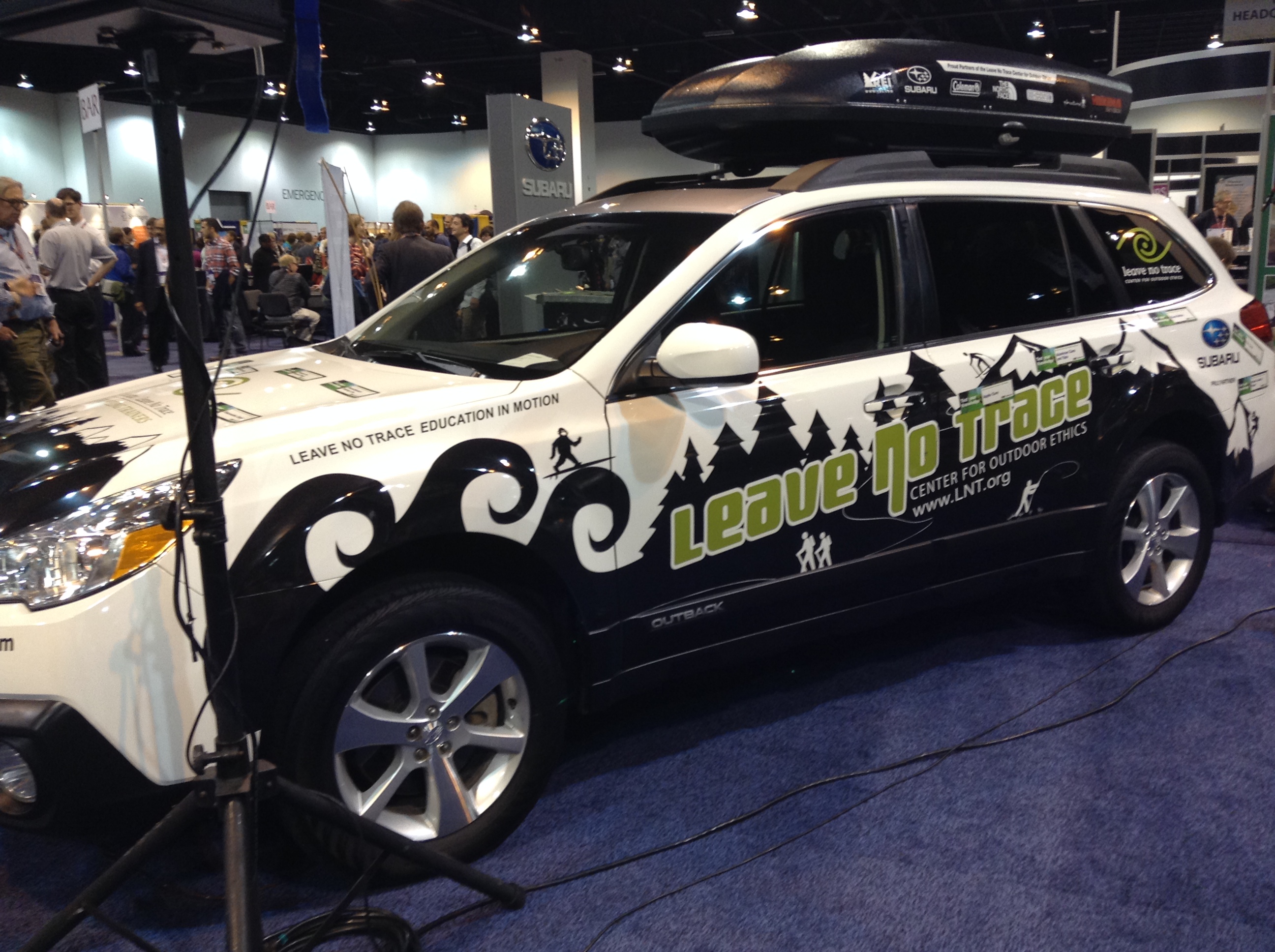 I then headed to the opening reception at the Exhibit Hall, where all of the exhibitors are set up and ready to showcase their products and educational resources. The room is quite crowded on the first night, so I am going to go through all of the booths later in the meeting. I was able to connect with some more of my geoscience colleagues I had not seen since last year’s meeting, including my dissertation adviser from graduate school. And, I was able to see my second mascot for the day (but this time, I was able to get my picture with him!). Smokey Bear was hanging out in the exhibit space for the U.S. Forest Service. I’m also going to spend more time at the Subaru exhibit – not because I need another Subaru (I love my Forester), but because of the Leave No Trace campaign they are promoting this year.