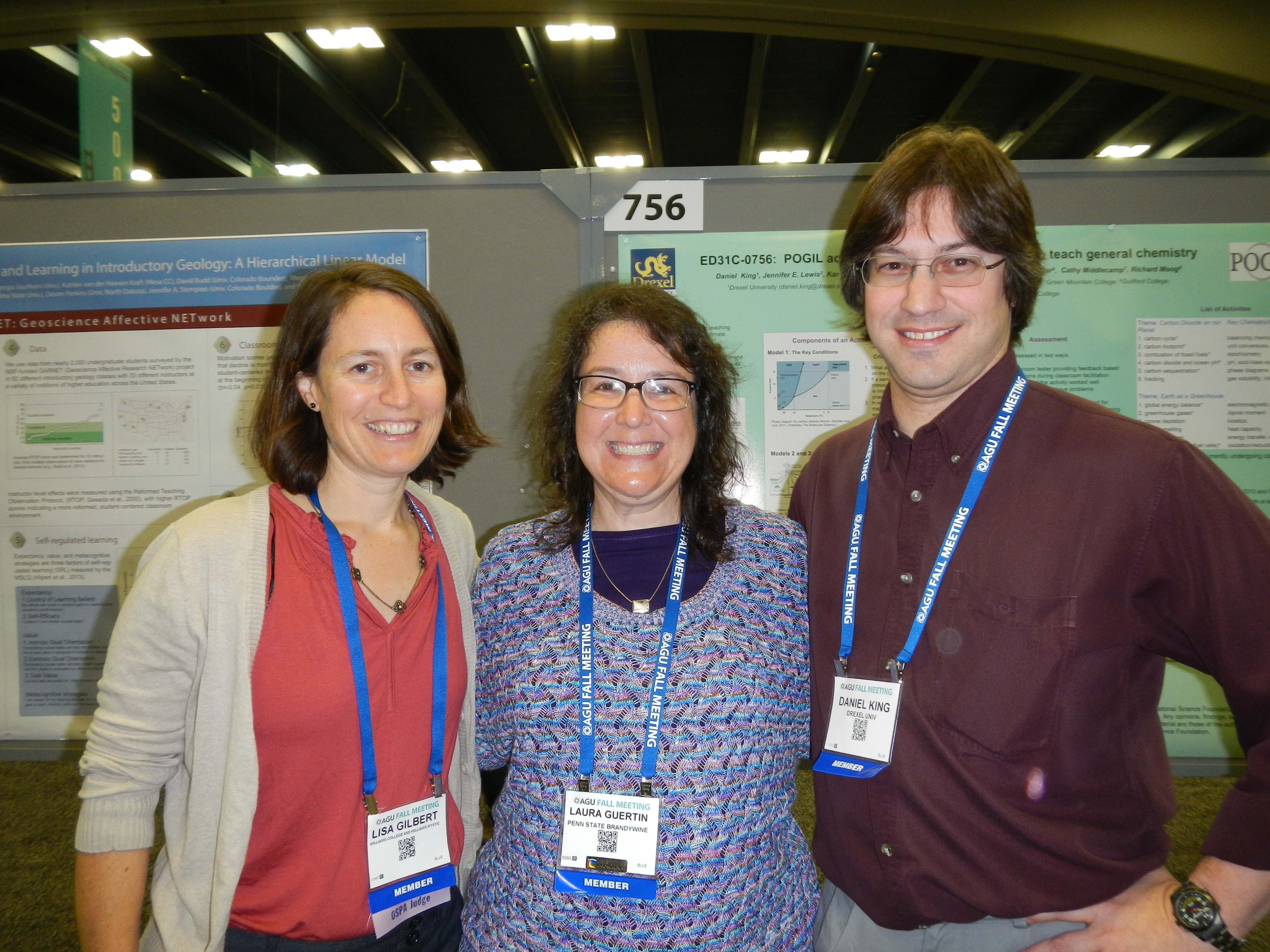 Wednesday morning in the AGU Poster Hall (from left to right) Lisa Gilbert, Laura Guertin, Daniel King.      Photo taken by Jill Singer.