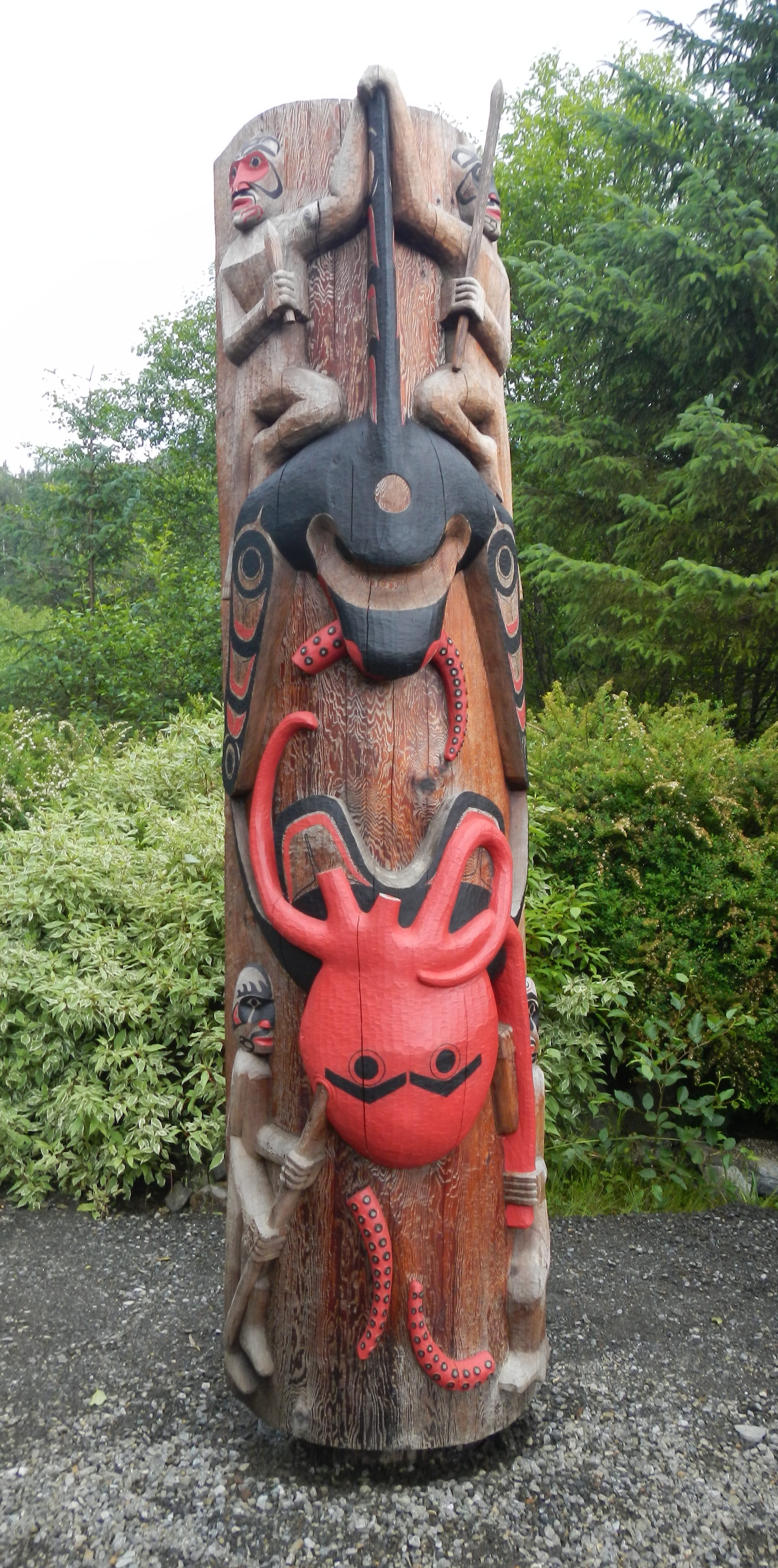 One additional surprise for me in this location was not as much the presence of all the totem poles, but the amazing symbolism and stories that the totem poles have to tell. At the Alaska Rainforest Sanctuary in particular, there is a Tsimshian from the Native community of Metlakatla that is carving poles with wildlife and legends of the region. I noticed that several of the poles have stories relating to the ocean – I can’t wait to bring these pieces of art and their stories into my oceanography course next time!
