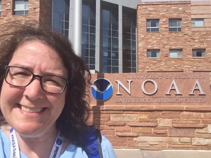 So I went ahead and made all of my reservations (flight & hotel) – and then, an email came through less than two weeks to the event to say that the schedule had changed, that we would no longer have access to see the JPSS-1 satellite, that the entire day would be at the NOAA facility in Boulder, and project scientists would join us there for a panel and an opportunity to see models from the project. This was disappointing to me, as seeing a satellite in a clean room would have been so cool(!), but to have the opportunity to tour the NOAA Earth Systems Research Laboratory (ESRL – a source of much data I use with students in my courses) and to still meet JPSS-1 scientists was an opportunity I couldn’t withdraw from. So when the time came, I packed my bags and headed to Boulder, Colorado.
