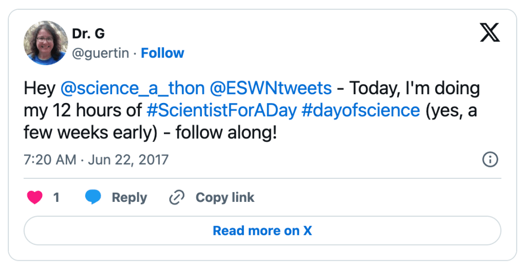 I’ve also summarized everything on Storify. [*note Storify platform no longer active] Please tune in to social media on July 13th to learn from other scientists with the hashtag #ScientistForADay – Enjoy!
