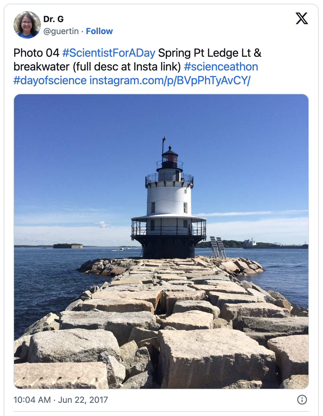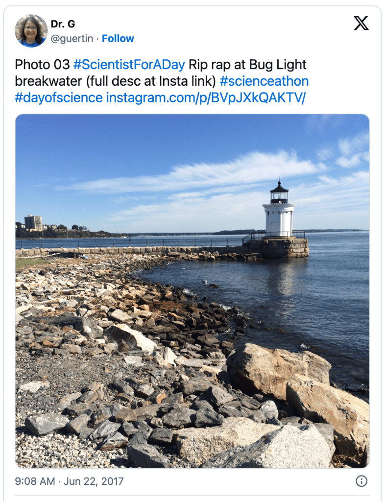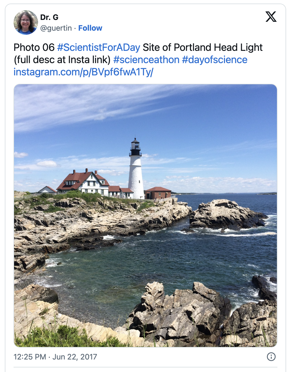 Although the official day of the Science-a-thon is July 13th, I participated early! (scientists have the option to do so). You can check out my 12 tweets from my participation on June 22nd while I was in Maine, and please do click on the links in the tweets to my Instagram account to read a fuller description of my adventures for the day.