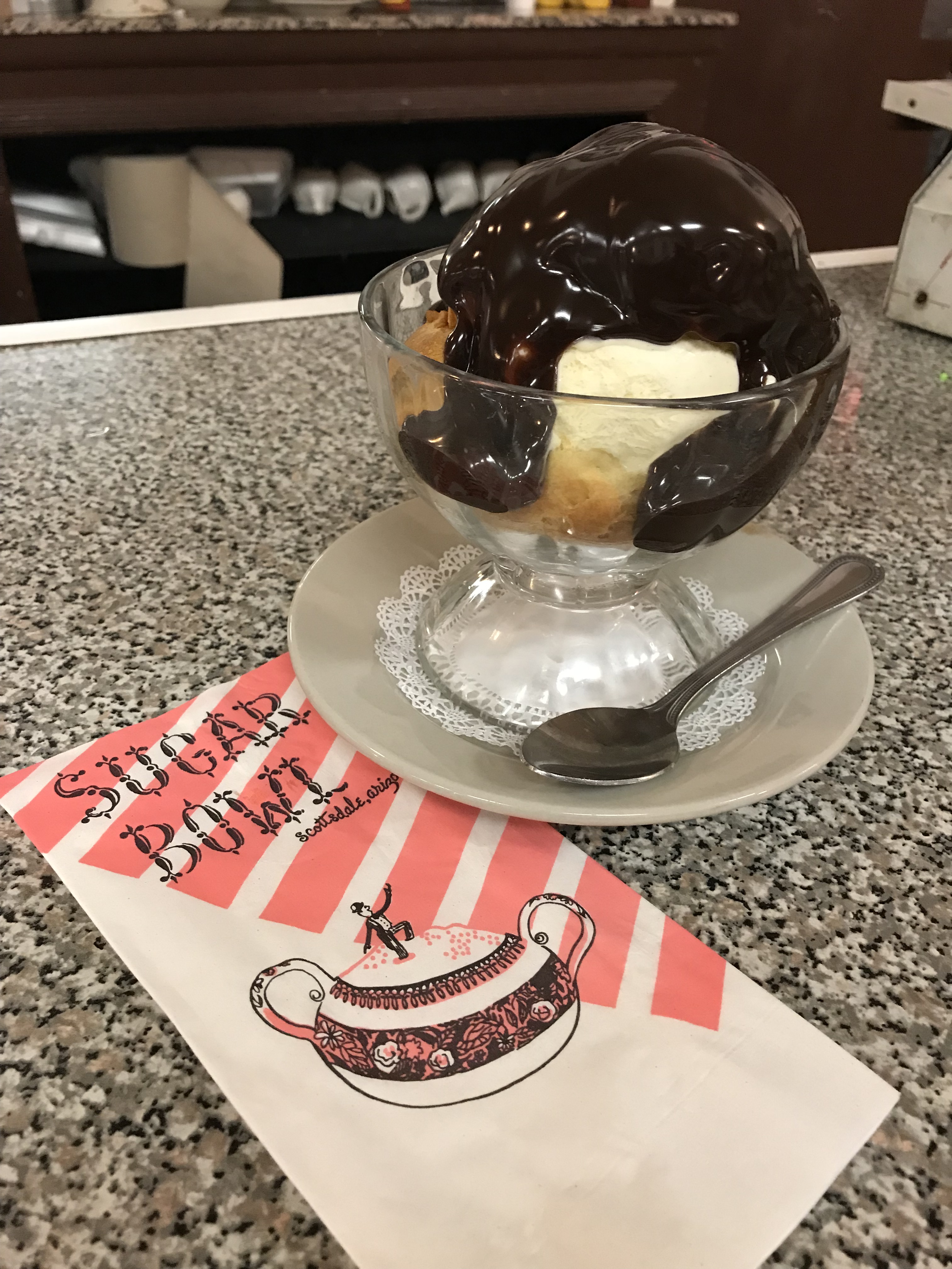 There have been a few activities for me in these early months of 2018. After the ePortfolio forum at AAC&U (my last blog post), I headed out to Arizona in February to do a grant panel review. It was quite chilly in Scottsdale, AZ – in fact, it was colder in Arizona than it was back in Philadelphia! Alas, I couldn’t resist getting some ice cream at this old ice cream parlor named Sugar Bowl – yummy! As spring training takes place in Arizona for some baseball teams, this dessert is named Top Hat Sundae – a special favorite of the baseball stars. It’s a “fluffy Sugar Bowl creampuff filled with creamy vanilla ice cream, then showered with hot fudge.” I think I’ll volunteer for this grant review panel again next year….