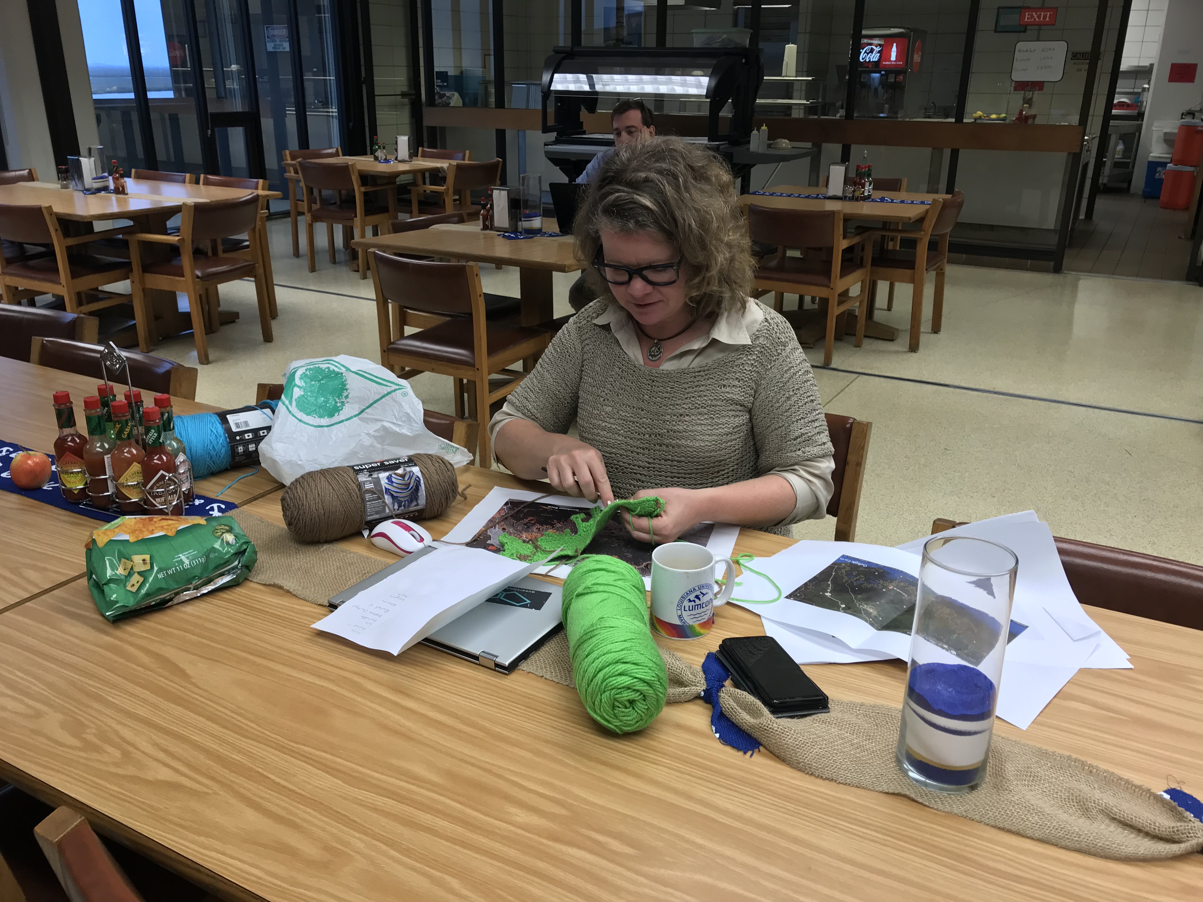 Gabriele has already begun her project! She is using three different colors of yarn to represent erosion and accretion of the Louisiana coast, and she plans on doing this for different time periods and taking photos to create a time-lapse of the changing coastline. I can’t wait to see what she creates!