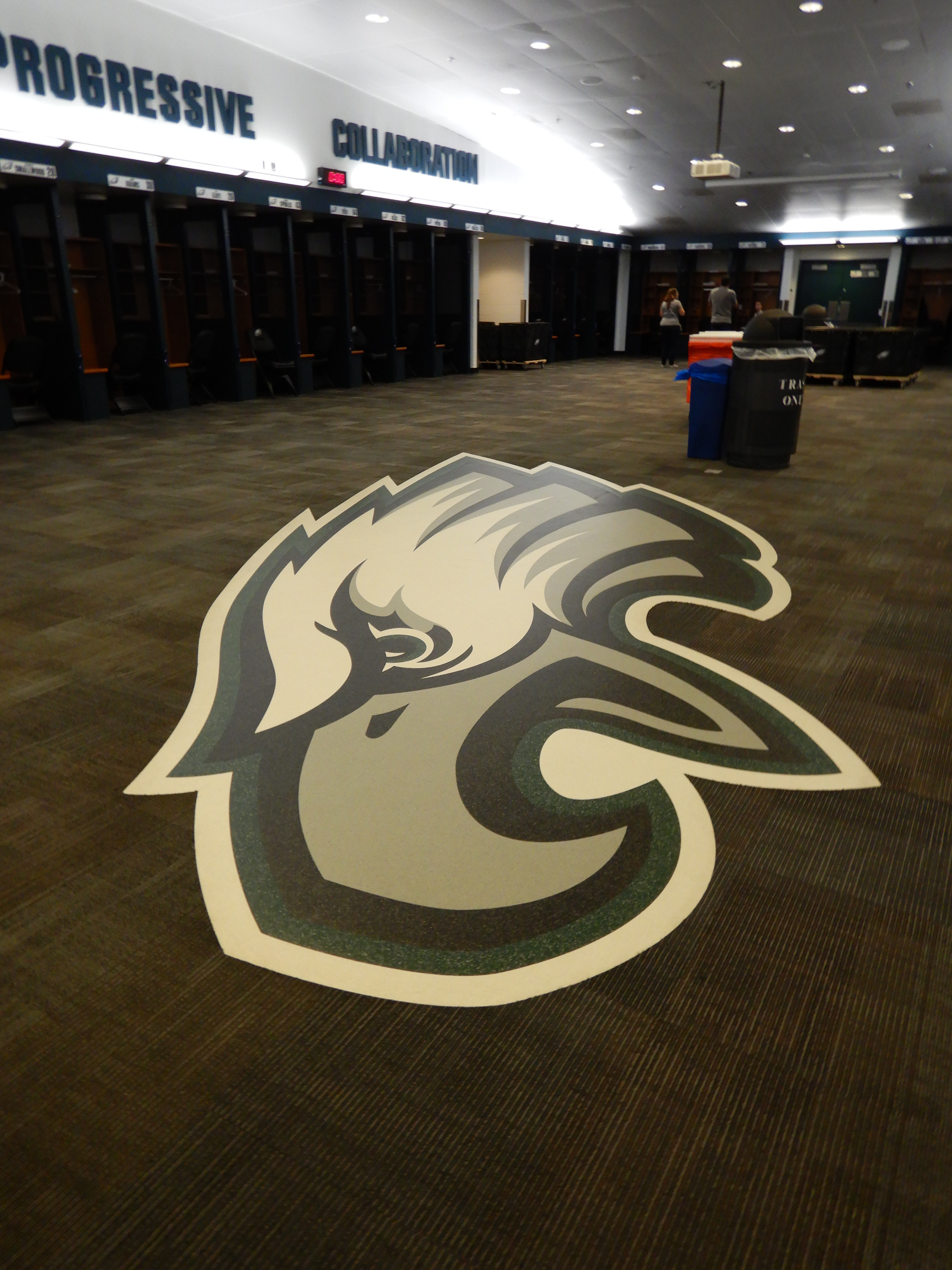 Then the next two parts of the tour didn’t have anything to do with sustainability, but were so cool to experience – going inside the Eagles team locker room, and learning what the song is that the Eagles walk out of the locker room and down to the tunnel on the field. Do you know what it is? (It’s in the poorly recorded video below, which ends right at the entrance to the tunnel on the right) All of us on campus want this as our entrance song now!