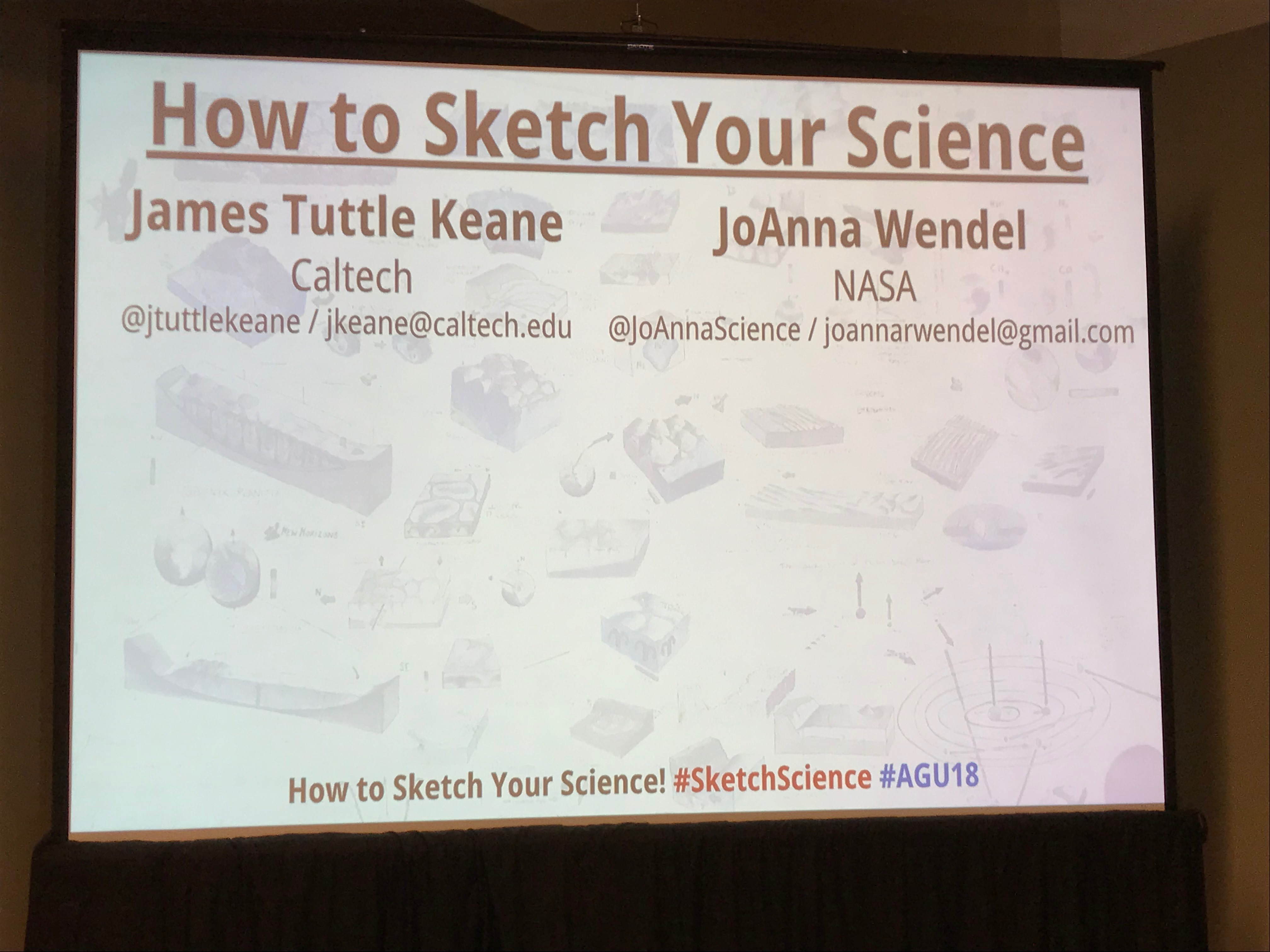 Today, I’m at the first full day of the American Geophysical Union (AGU) Fall Meeting, being held in Washington DC. It is estimated that there are ~26,000 Earth and space scientists in attendance to give presentations, attend workshops, and network within the community. There are several different activities I’ll be a part of all week, but today, I started off by attending a workshop titled, “How to Sketch Your Science.” This workshop is part of AGU’s Sharing Science program and was led by James Tuttle Keane (Cal Tech) and JoAnna Wendel (NASA). I am in no way an artist beyond being able to draw stick figures and able to hold my own in a game of Pictionary, but I was curious to see how I might be able to use some of their tips for my own science communication. Others were curious to learn as well, since there were over 100 people that showed up for the workshop!