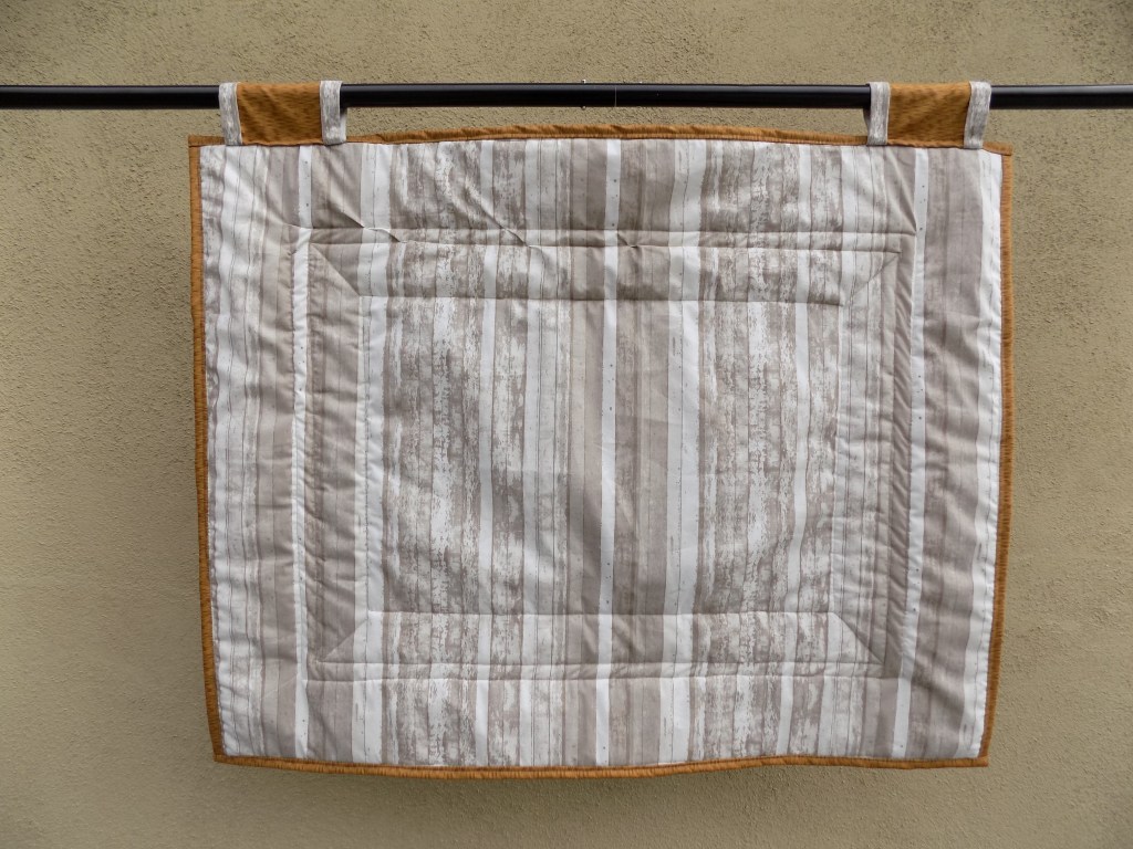 The pattern for this quilt is one I modified from Patchworks Studio Windswept View, squaring off the windows but leaving the borders so one feels as if they are looking out a wall with three adjacent windows. The completed quilt is 20 inches in height by 43 inches across.