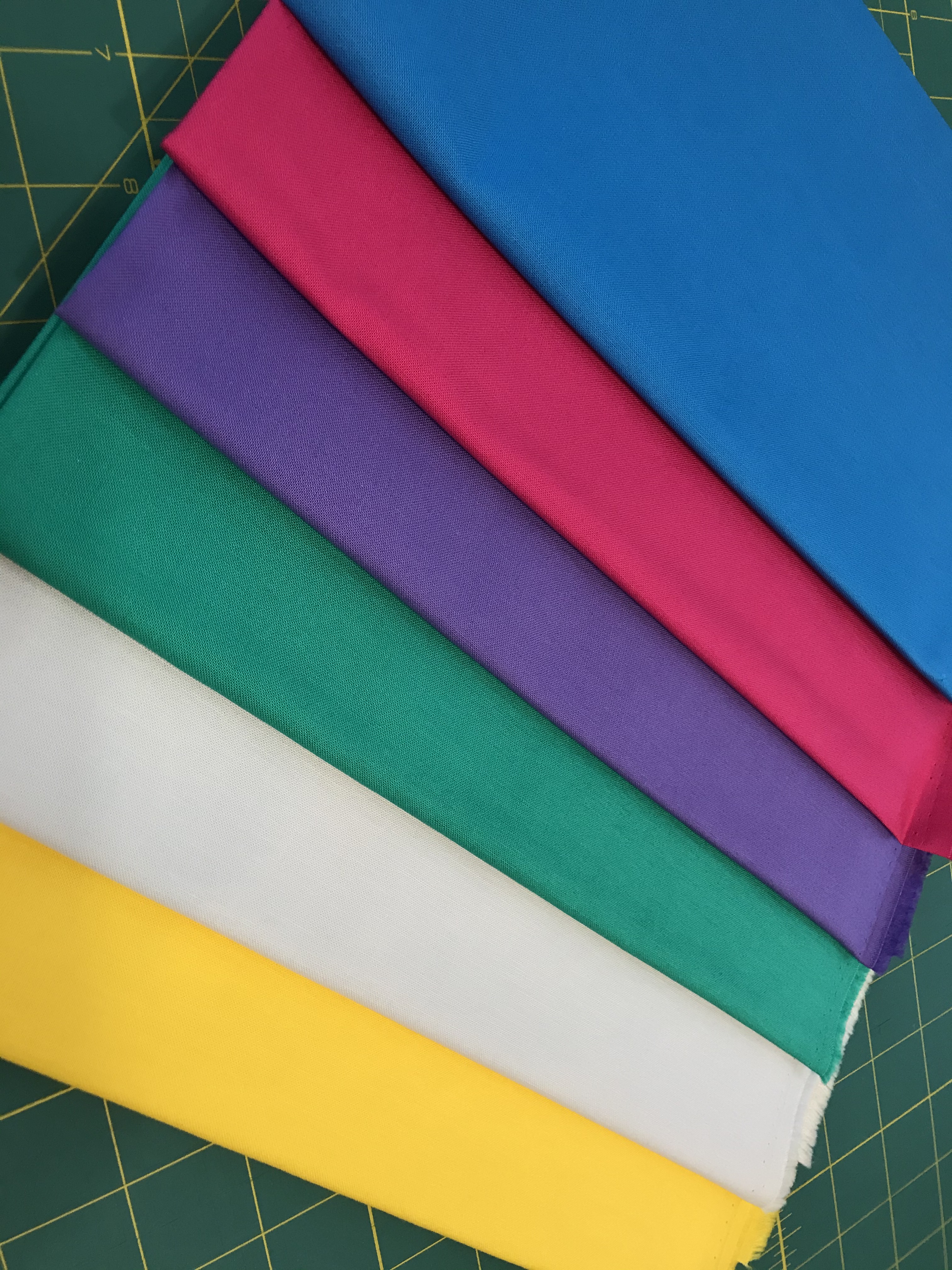 Curated Quilts provides a starter set of fat quarters in the color palette for the challenge (see image at beginning of this post), and I immediately went online and ordered a set, since I knew I wouldn’t have enough solids in my current collection across these colors.