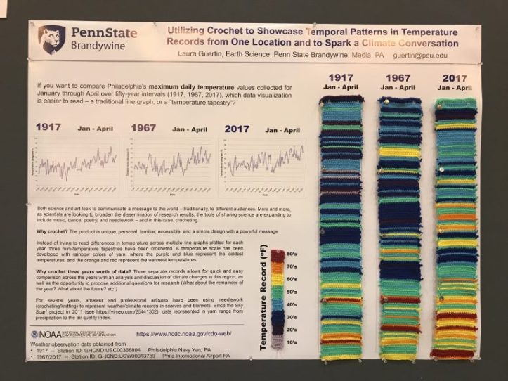 I will admit, I was quite nervous when I began sharing these quilts. Would anyone view quilting as a serious tool for science storytelling? Fortunately, the quilts have been a success with scientists and non-scientists alike. I have found that people enjoy coming up and looking at a quilt, because everyone has their own quilt story! I have heard from so many people stories about their own parents or grandparents that made them a quilt, or stories about a blanket that adults have had since childhood. I didn’t realize the ability of a quilt to draw in an audience willing to listen to the story behind the quilt–and then (the best part!), share that story with others.