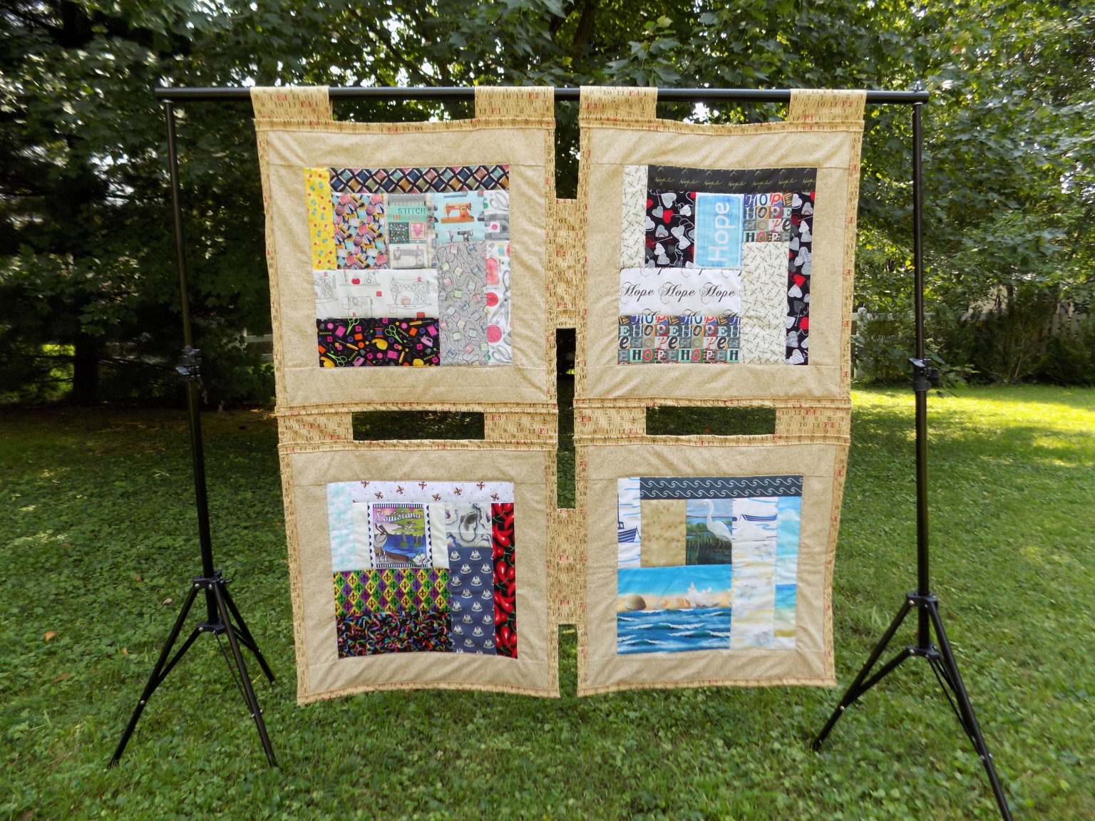 I started with the story of Christmas trees, thanks to the inspiration from my fellow airline passenger. I quickly realized that there is no quilt pattern for this type of story or for any of the stories I wanted to tell via quilting. I took my time figuring out how much I could include in the quilt and which fabrics could help with the storytelling. In the end, after two years, I generated a collection of nine quilts that I call Stitching Hope for the Louisiana Coast. Check out all of the quilts from this series in this video. Full quilt descriptions can be found on the Journeys of Dr. G Blog.