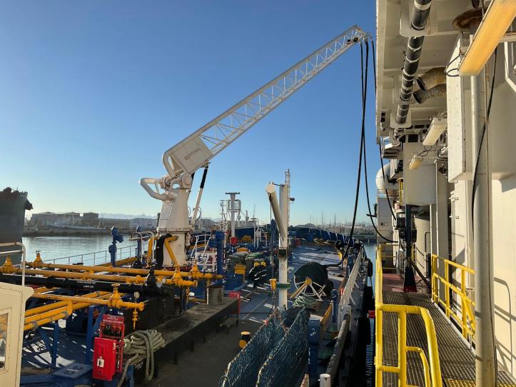 Ship loading fuel on to JOIDES Resolution before departing Cape Town (photo from April 10, 2022)