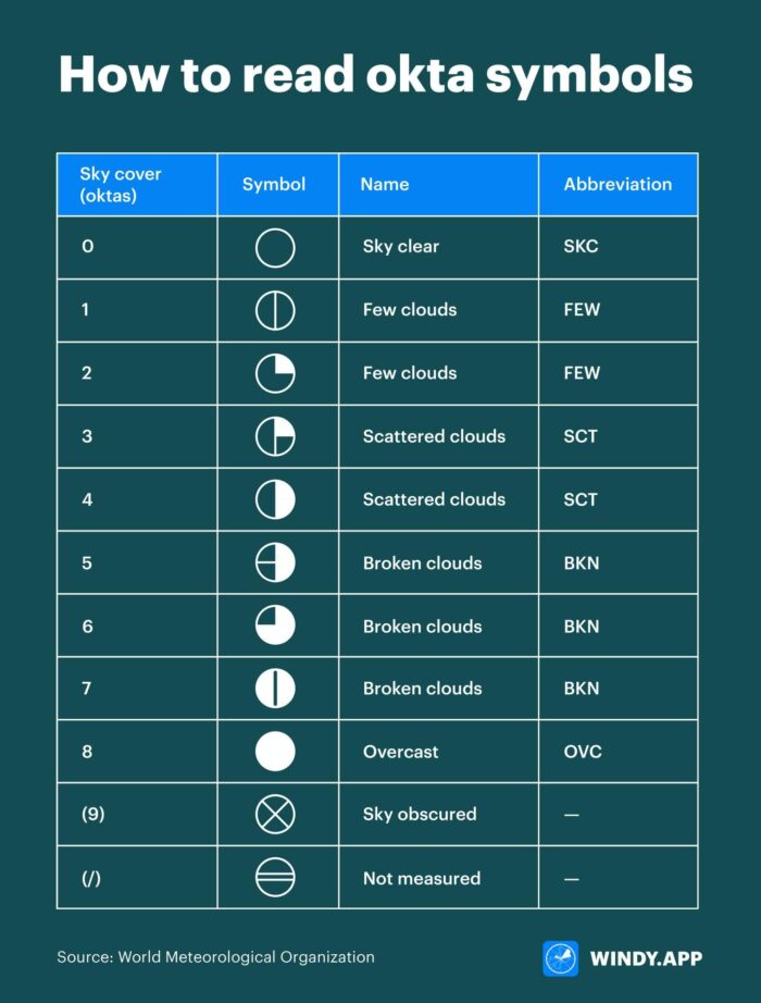 Recording the daily variations in the color of the sky is one way to make regular observations of our surroundings. In addition to making sky color observations, scientists also record a value called cloud cover, sometimes called cloud amount. This is defined as the fraction of the sky covered by cloud of any type or height above the ground. It is measured on the okta scale that starts at zero for a clear sky and extends to 8 for a sky that is completely overcast.