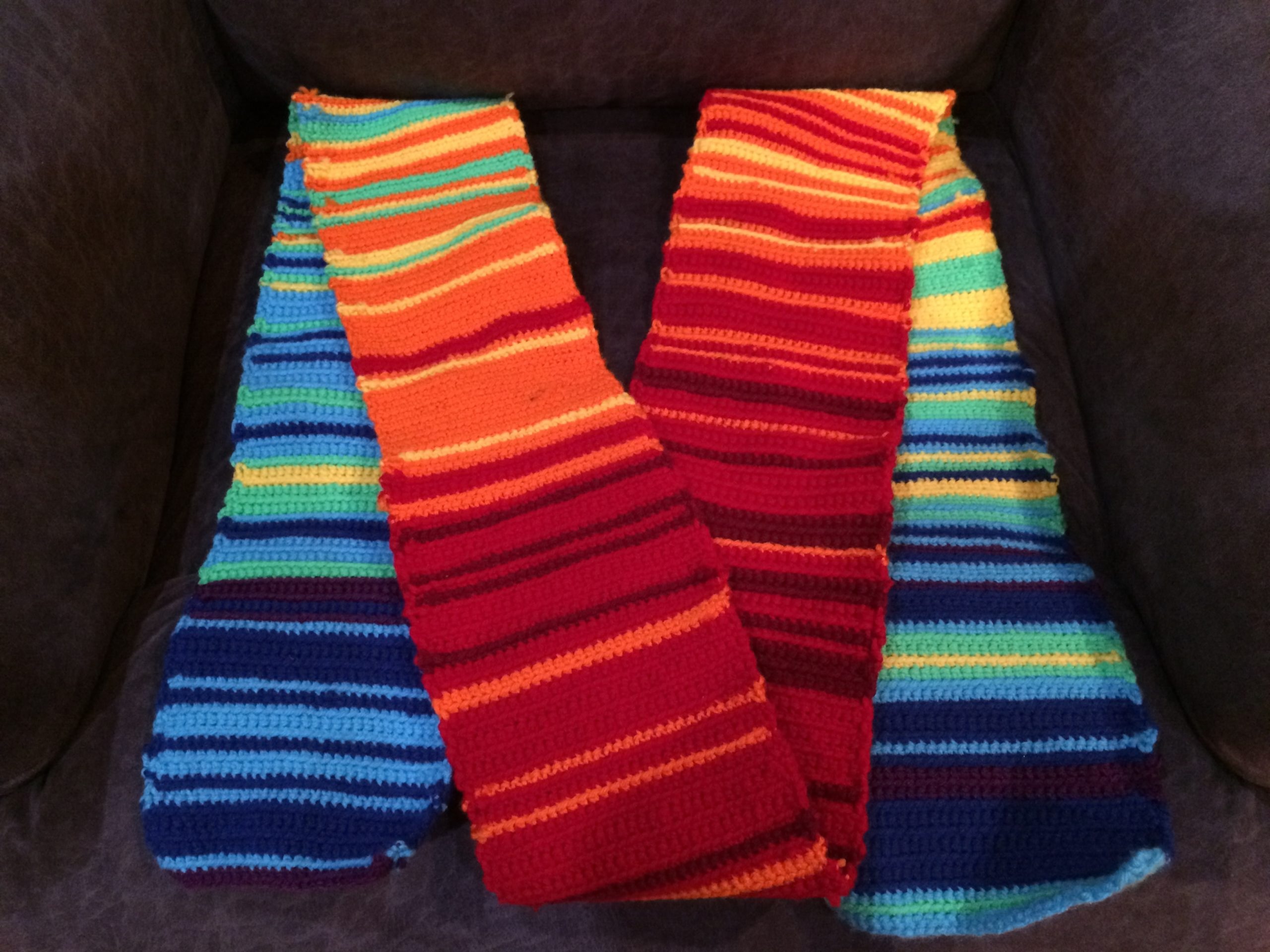 Then, I will crochet a row in the color of yarn I brought with me that most closely matches what I see. I won’t be out long enough to generate an entire scarf, but I’ll stitch several rows so that by the end, I’ll have a potholder, or mini table runner, or a small wall hanging—something fun that documents my observations.
