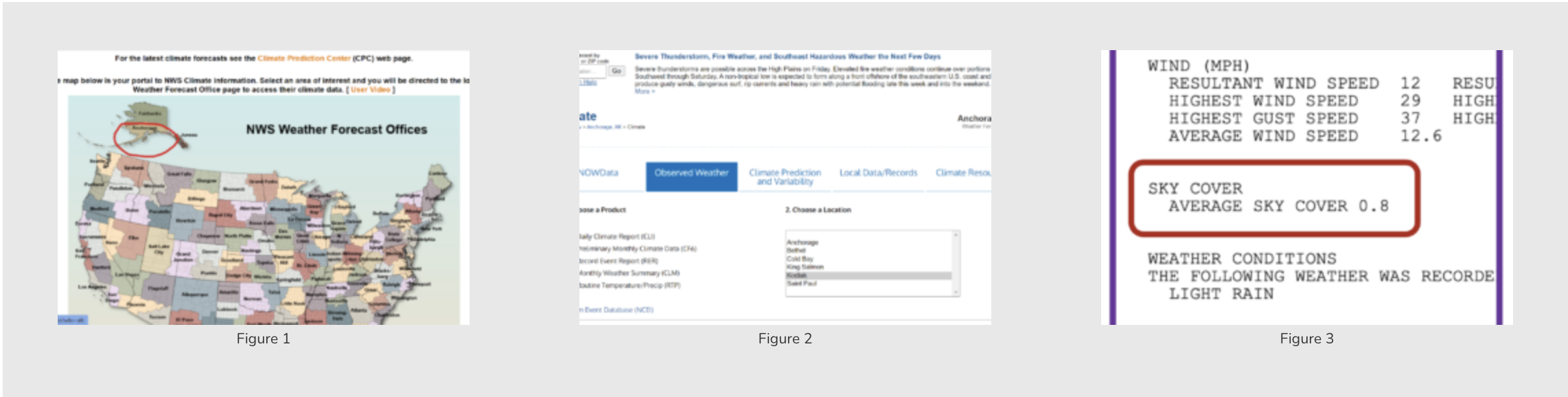 - On the next page, select the tab “Observed Weather” > “Daily Climate Report (CLI)” > then the location “Kodiak” (as my ship is departing from Kodiak Island). [See Figure 2]
