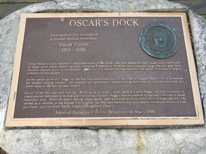 There is a dock in Kodiak named after Oscar Dyson with a marker to note his contributions and achievements (*photos taken by me as I spent some time exploring Kodiak in 2022)