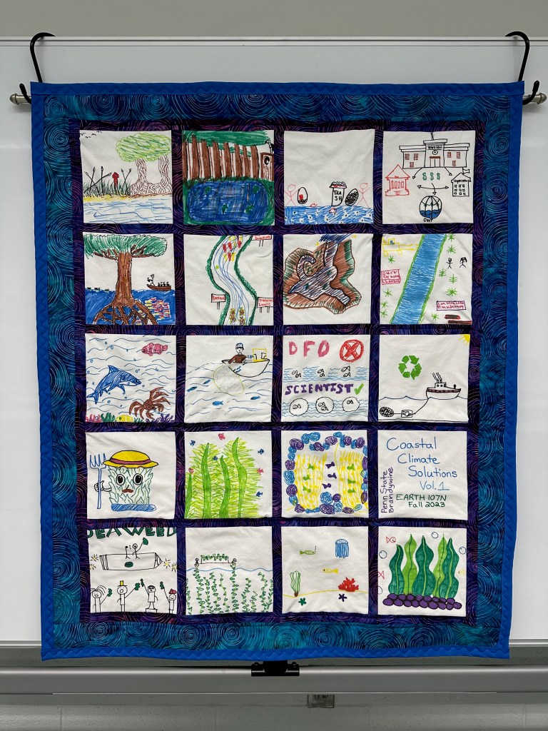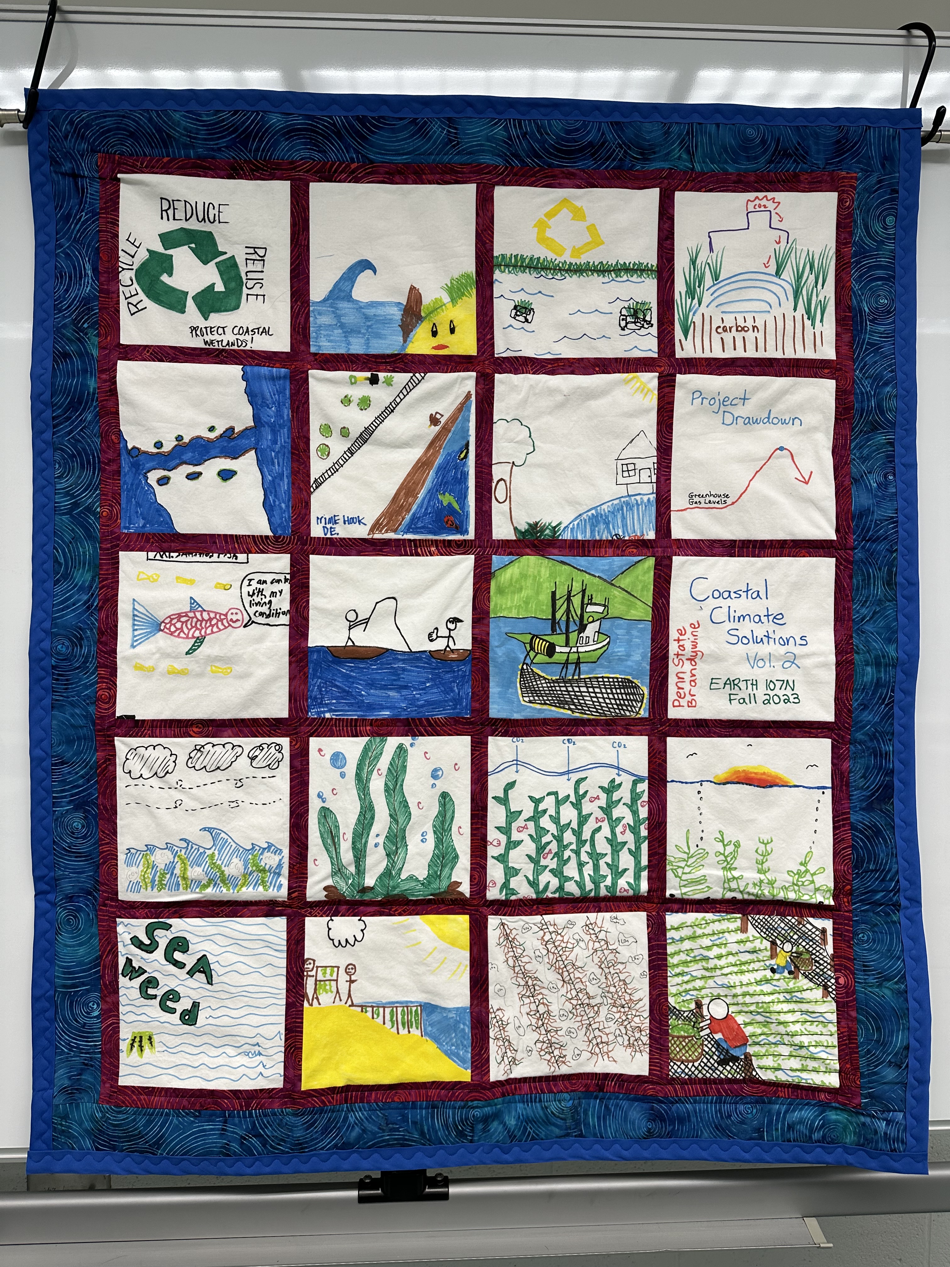 […] When I taught coastal oceanography in Fall Semester 2023, I had the students in each section of the course author stories relating to coastal climate solutions. These solutions are ones researched and modeled by Project Drawdown. To wrap up their project, students drew an image relating to their stories on fabric squares, which resulted in two collaborative student quilts on Coastal Climate Solutions. […]