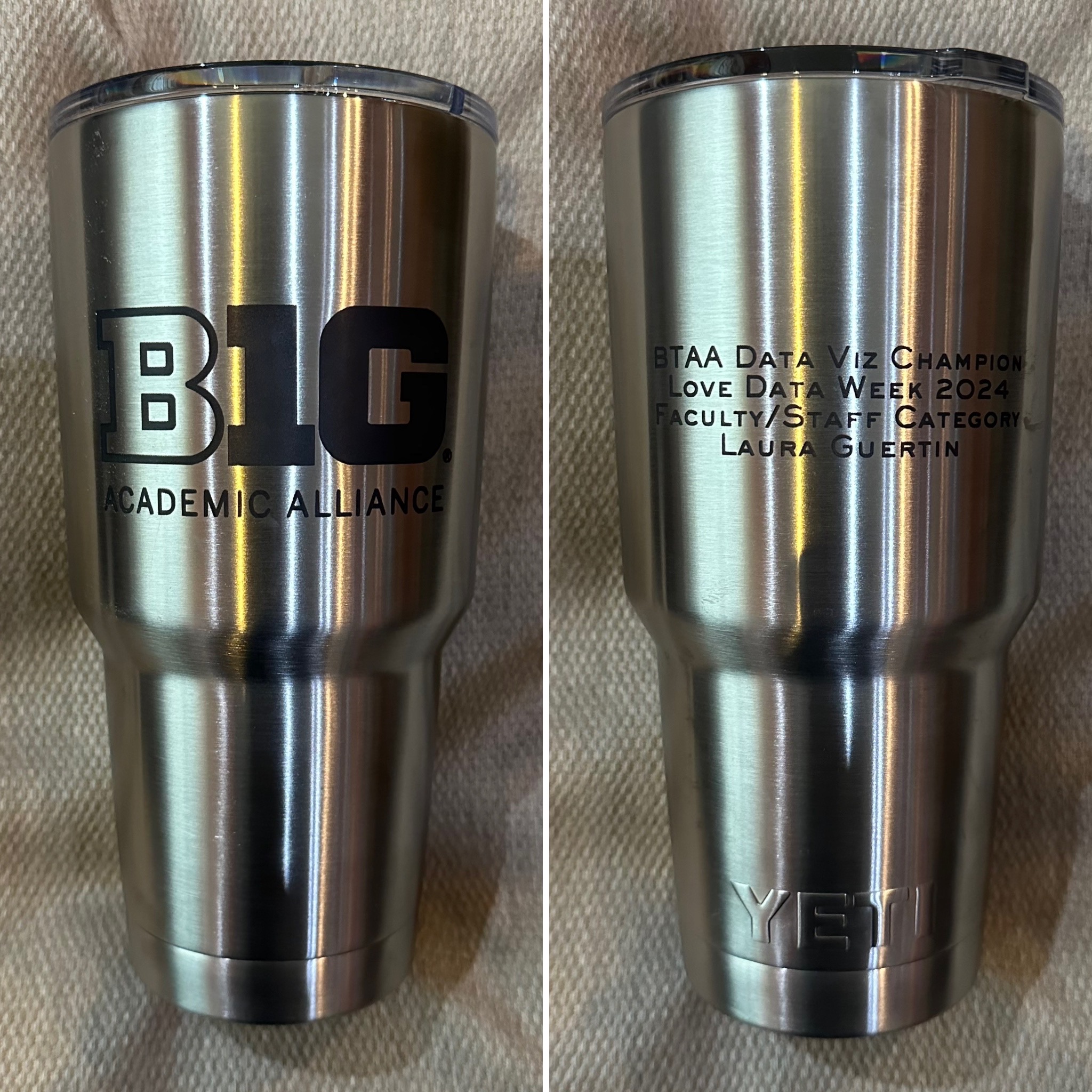 Words can’t describe how surprised and thrilled I was to hear that a quilt won a data visualization competition! It still brings a smile to my face! I just received my award of an engraved YETI tumbler in the mail (which is why this post is coming months after the competition concluded).