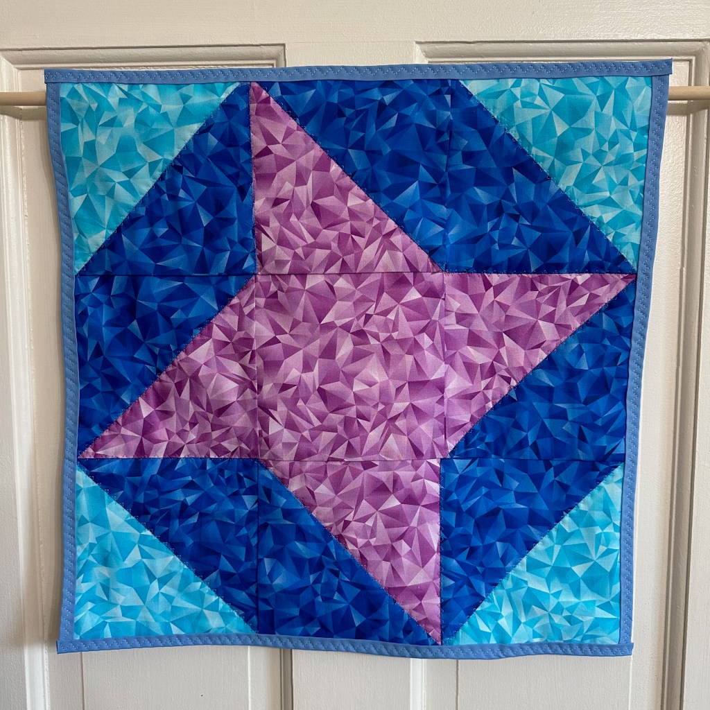 These are some images of additional mini quilts I have given as gifts in recent years. In the first three quilts, I utilized scraps of Three Cats Shweshwe, a Da Gama textile manufactured in South Africa, that were leftover from the quilts I made for my Stories from the South Atlantic Ocean collection.