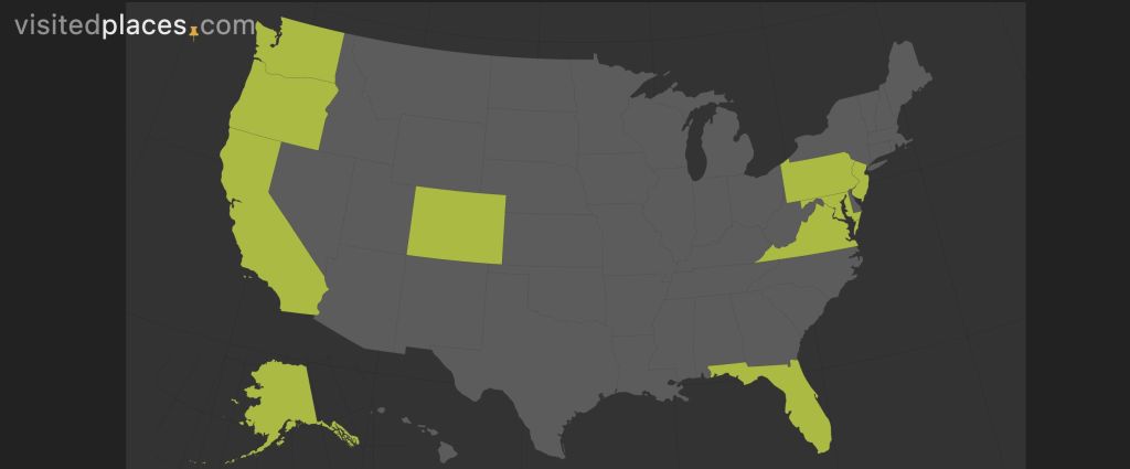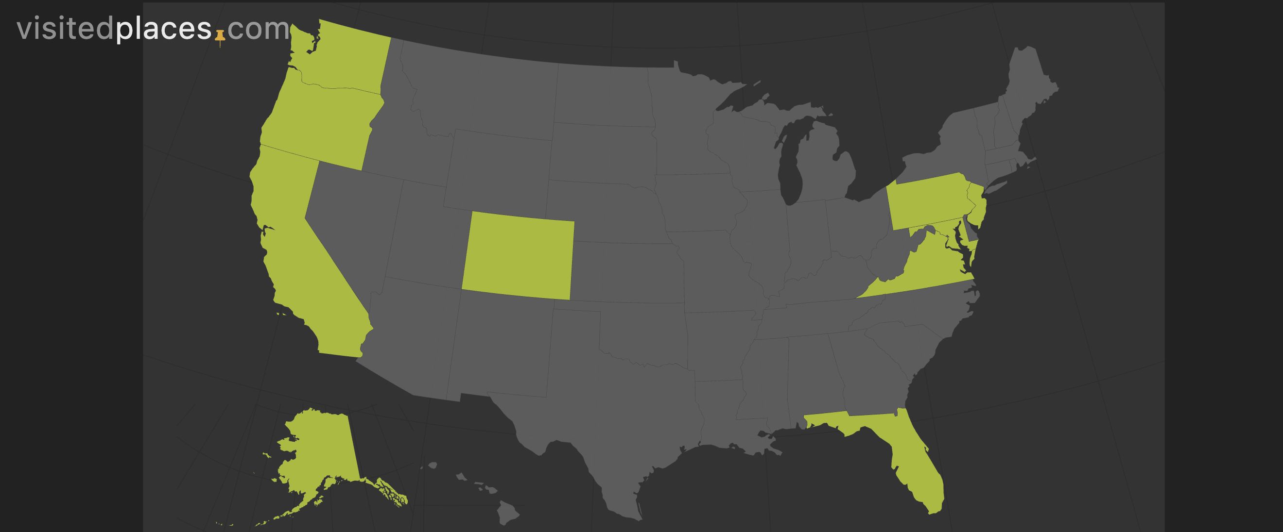 California, Maryland, Virginia, New Jersey, Oregon, Washington, Alaska, Colorado, Florida